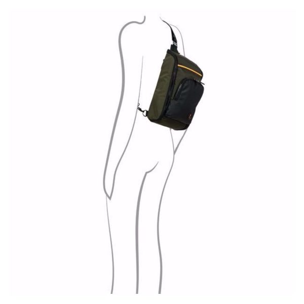The Eolo sling bag is made of water-repellent nylon, it is perfectly structured to contain your personal items. It is equipped with a bright led band making your visibility more secure in the evening hours.