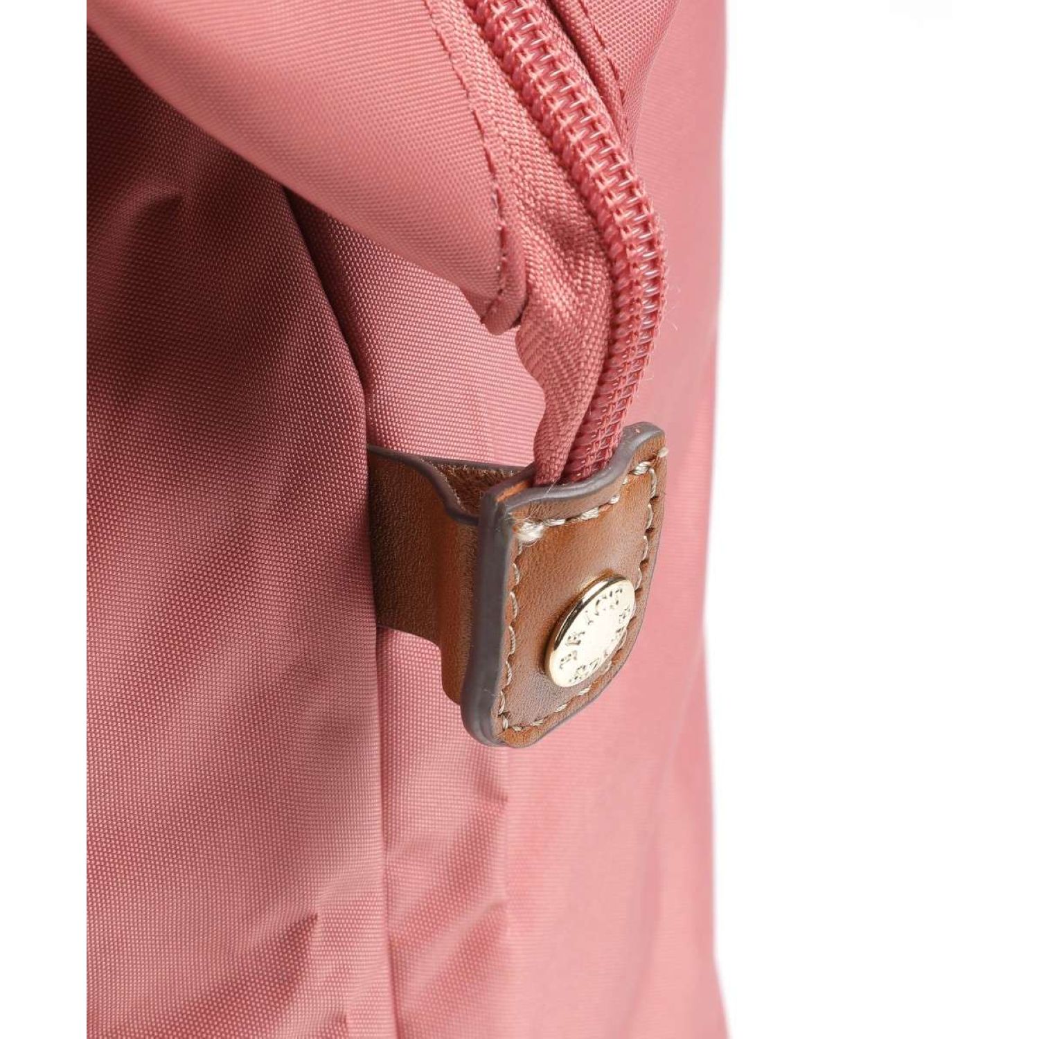 - Exterior: Made in durable, easy-to-clean satin nylon with leather finishings; broad leather handle; zipped side pocket; a strap on the back allows it to be secured to the trolley handle.