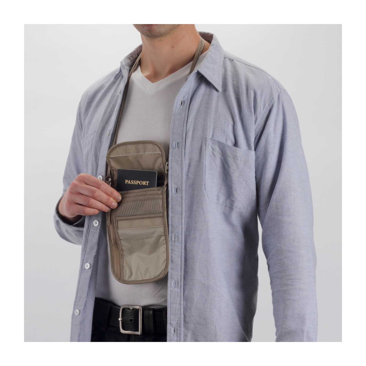 - Two zippered pockets for organization of Passport, currency and larger items