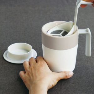 Press to brew your tea and coffee. Lower the plunger to enjoy rich aromatic coffee or tea in just a few minutes! CAFEPRESS mug brews and strains all in one place. Just put in the coffee grounds or tea leaves, add boiling water, and let it brew. After a few minutes, slowly press down the plunger and enjoy! The double layered mug keeps your beverage warmer longer while protecting your hand from the heat.