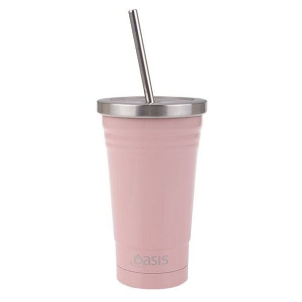 Oasis Stainless Steel Insulated Smoothie Tumbler with Straw 500ML – Soft Pink