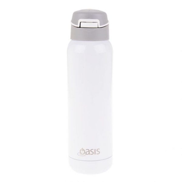 Oasis Stainless Steel Insulated Sports Water Bottle with Straw 500ML – White
