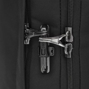 - RFIDsafe? blocking pockets and material; PopNLock security clip; Carrysafe? slashguard strap with Dyneema?; eXomesh? slashguard (embroidered method); Roobar? Sport locking system; Puncture resistant ToughZip; Secure zip tab