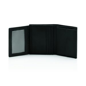 - Compact, horizontal trifold wallet for men, with a coin pocket