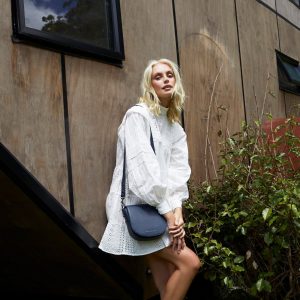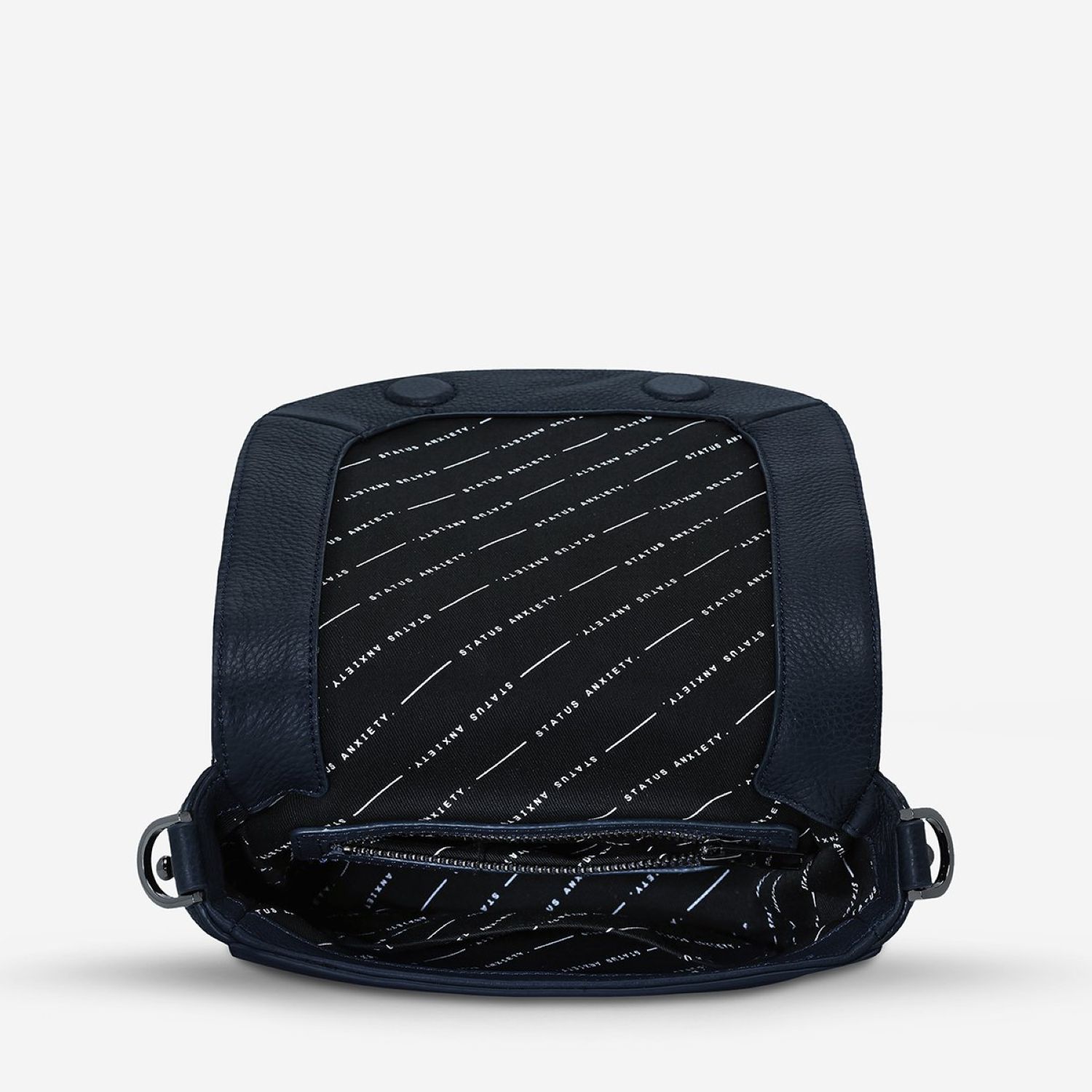 Status Anxiety Art Of Pretending Leather Crossbody – Navy Blue