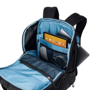 Top loading compartment or side zipper allows easy access to laptop and tablet